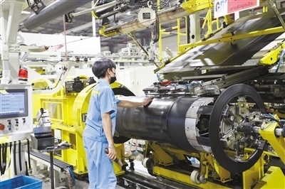 通用橡膠(泰國(guó))有限公司年產(chǎn)各類(lèi)輪胎共計(jì)730萬(wàn)套。圖為泰籍員工在汽車(chē)輪胎生產(chǎn)線(xiàn)上工作。本報(bào)記者 孫廣勇攝