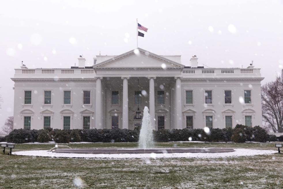 ?這是1月15日在美國首都華盛頓拍攝的雪中的白宮。新華社發(fā)(阿倫攝)