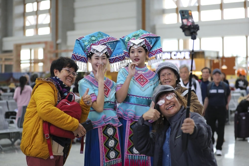和謝先生一樣乘動(dòng)車跨境旅行的還有來(lái)自四川、湖南等地的300多名游客。