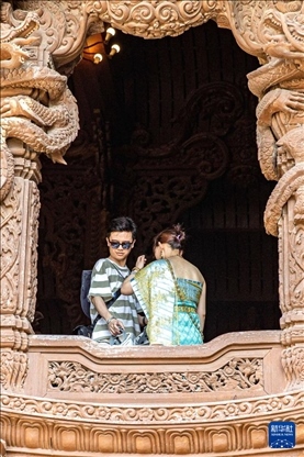 3月29日,游客在泰國(guó)芭堤雅真理圣殿拍照。新華社記者 王騰 攝