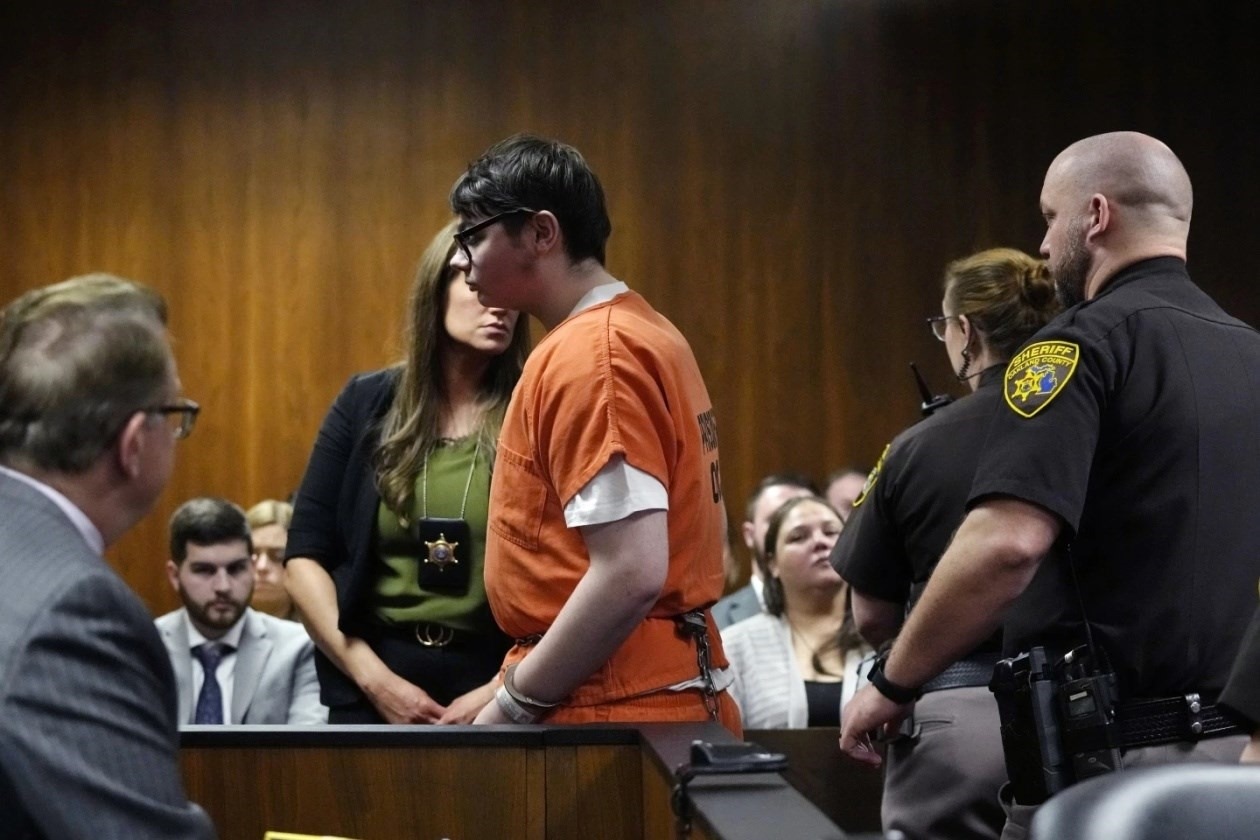 2021年11月30日,時(shí)年15歲的伊森·克倫布利在密歇根州底特律市附近的牛津鎮(zhèn)中學(xué)開槍打死4名同學(xué),打傷6名同學(xué)和一名老師。他于2022年承認(rèn)4項(xiàng)一級(jí)謀殺罪名,被判處終身監(jiān)禁且不得假釋。