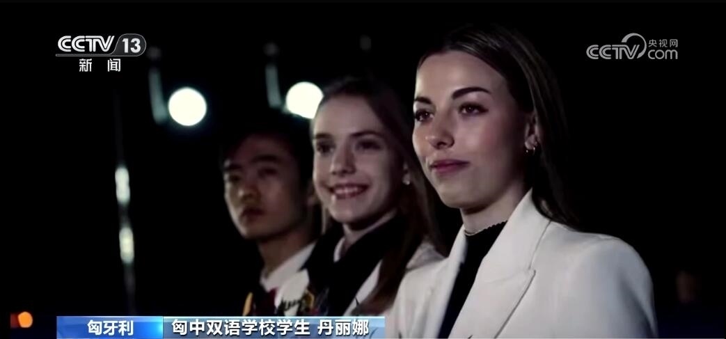 匈中雙語學校學生丹麗娜說:“我很開心可以見到他們。我說,您好,我是匈中雙語學校的丹麗娜,歡迎來到匈牙利。這個領帶上可以看到匈牙利國旗和中國國旗,它們一起就是一個中字,這領帶代表兩個國家的友誼。我學了10年漢語,將來這個語言會給我打開很多工作的新門?!?/p>