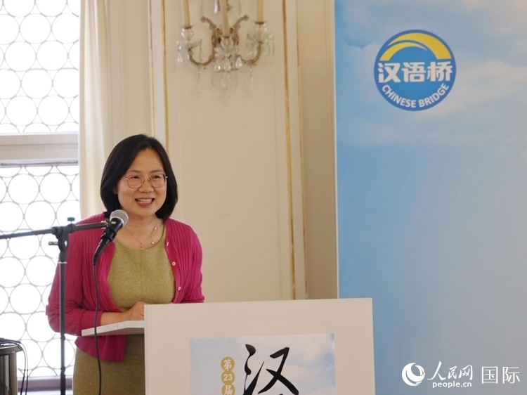 中國駐德國大使夫人郭金秋參贊在開幕式致辭。人民網(wǎng)記者 劉仲華攝