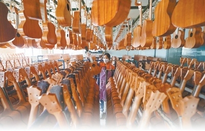這是今年娜塔莎樂器公司發(fā)往日本客戶的第三批貨,大約300把。“每把吉他最后的質(zhì)檢流程需要20分鐘左右,我們要確保每一把吉他的質(zhì)量?!惫拘姓鞴茼f林飛說(shuō)。2019年,受當(dāng)?shù)卣猩桃Y政策的吸引,娜塔莎樂器公司落戶貴州遵義市正安縣。如今,公司已建成一個(gè)頗有名氣的自主品牌。