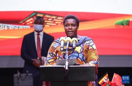 9月25日,烏干達(dá)副總統(tǒng)杰西卡·阿盧波在坎帕拉舉行的慶祝中華人民共和國成立75周年招待會上致辭。新華社發(fā)(阿佳拉·納瓦達(dá)攝)