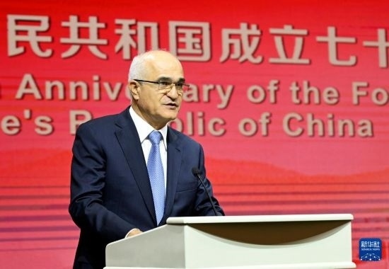 9月26日,阿塞拜疆政府副總理沙欣·穆斯塔法耶夫在巴庫舉行的慶祝中華人民共和國成立75周年招待會上致辭。新華社發(fā)(巴巴耶夫攝)