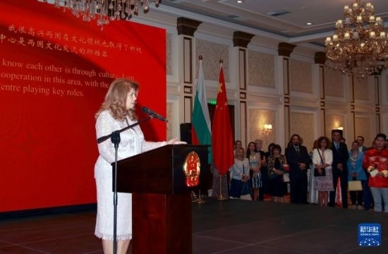 9月27日,保加利亞副總統(tǒng)伊利亞娜·約托娃在索非亞舉行的慶祝中華人民共和國成立75周年招待會上致辭。新華社發(fā)(德拉加諾夫攝)