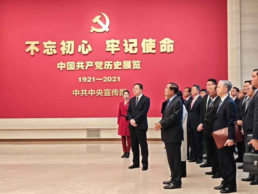 “了解研究歷史,對推進(jìn)實現(xiàn)國家富強、開創(chuàng)人類美好未來具有重要意義?!?2月4日上午,正在對中國進(jìn)行正式友好訪問的柬埔寨人民黨主席、參議院主席洪森專程來到中國共產(chǎn)黨歷史展覽館參觀。一張張歷史圖片、一件件文獻(xiàn)實物、一個個逼真場景……展廳內(nèi),洪森不時駐足,由衷贊嘆中國共產(chǎn)黨領(lǐng)導(dǎo)中國取得的發(fā)展成就。