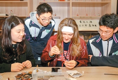 在隨后的手工環(huán)節(jié),來自美國佛羅里達州賽普萊斯灣高中的伊麗莎白·埃倫維·阿桑森體驗了中藥香囊制作,向小伙伴們展示了自己的成果。“中藥香囊的香氣很宜人,我非常喜歡。制作過程本身就充滿了文化魅力。”她說。