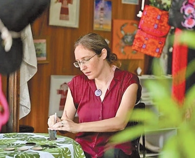“這種美麗的藝術讓我沉醉?!毙〉昀?,謝敏拿起一小塊椰殼,蘸取顏料,在椰殼上細細勾勒。
