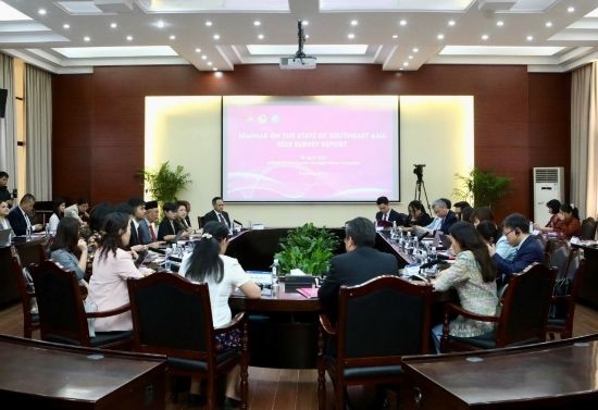 2025年4月16日,中國-東盟中心與廣西民族大學(xué)在南寧共同舉辦研討會,結(jié)合新加坡尤索夫·伊薩東南亞研究院日前發(fā)布的《東南亞態(tài)勢2025調(diào)查報(bào)告》,就中國東盟關(guān)系及美加升關(guān)稅對地區(qū)影響進(jìn)行深入討論。來自中國和新加坡、泰國、文萊、馬來西亞、印度尼西亞、越南的學(xué)者參加研討,泰國、柬埔寨、馬來西亞、緬甸駐南寧總領(lǐng)事和越南駐南寧領(lǐng)事等出席研討會。