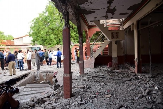 這是5月7日在巴控克什米爾地區(qū)首府穆扎法拉巴德拍攝的遭印度空襲的建筑。新華社發(fā)(穆罕默德·丁·穆加爾攝)