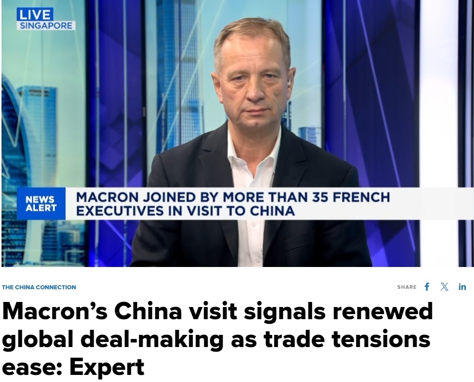 新加坡國立大學(xué)東亞研究所所長(zhǎng)阿爾弗雷德?席睿德在接受采訪時(shí)認(rèn)為,馬克龍此次出訪不僅有望收獲重要的商業(yè)成果,更將在歐洲與中國之間長(zhǎng)期存在的重要貿(mào)易問題上推動(dòng)雙方在關(guān)鍵議題尋求突破。