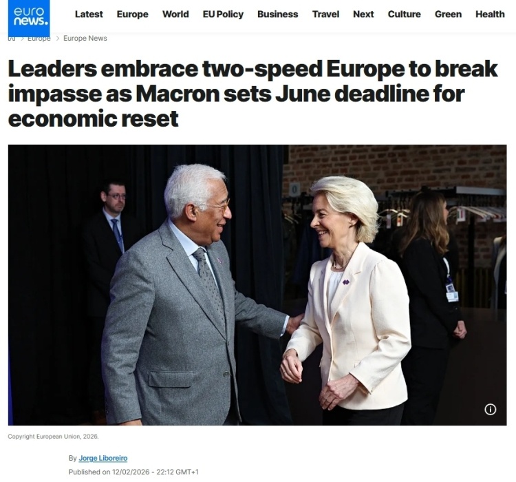 《政治報(bào)》網(wǎng)站歐洲版的報(bào)道評(píng)論稱,歐盟一直以其成員國(guó)團(tuán)結(jié)一致向前邁進(jìn)而自豪,那個(gè)時(shí)代已經(jīng)結(jié)束了。2月12日在比利時(shí)舉行的會(huì)議上,法國(guó)、德國(guó)、意大利等多國(guó)領(lǐng)導(dǎo)人支持,最早將于下個(gè)月的歐洲理事會(huì)上形成一項(xiàng)計(jì)劃,以簽署組成更小團(tuán)體的倡議。各國(guó)政府表示,由于歐洲的許多想法陷入優(yōu)柔寡斷和不和諧之中,歐洲的競(jìng)爭(zhēng)優(yōu)勢(shì)正在逐漸消失,因此他們感到一種緊迫感。
