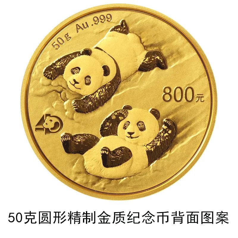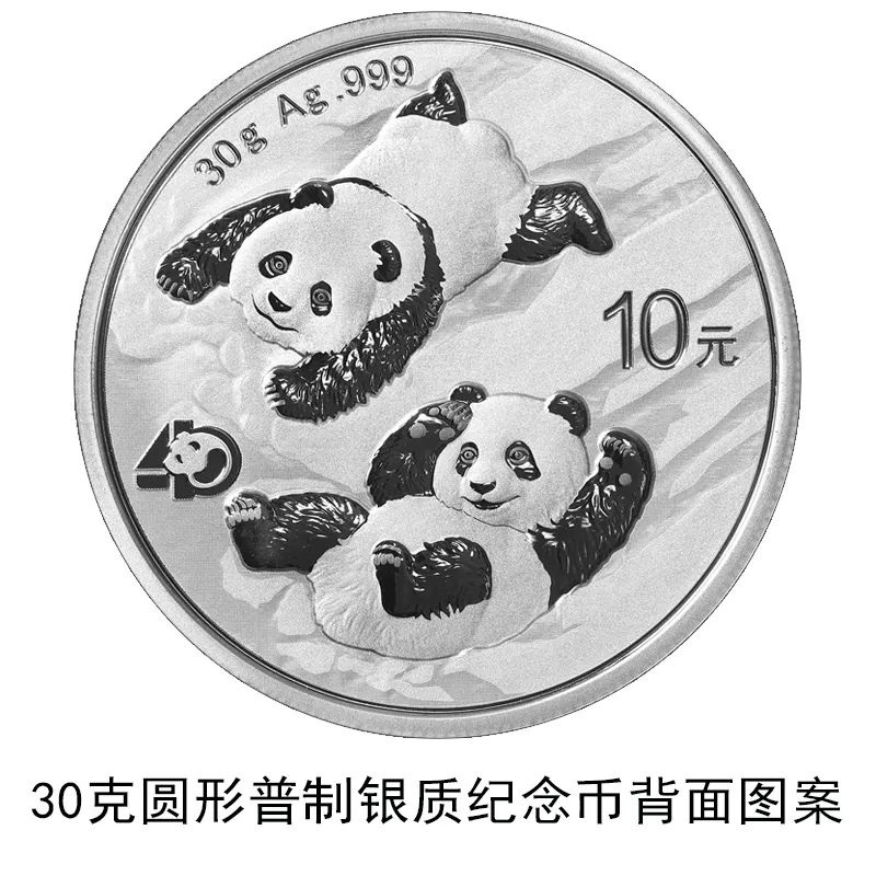 該套貴金屬紀(jì)念幣正面圖案均為北京天壇祈年殿,并刊國名、年號(hào);背面圖案均為大熊貓滑雪嬉戲場(chǎng)景,輔以“熊貓金幣發(fā)行40周年標(biāo)識(shí)”元素,并刊面額、重量及成色。