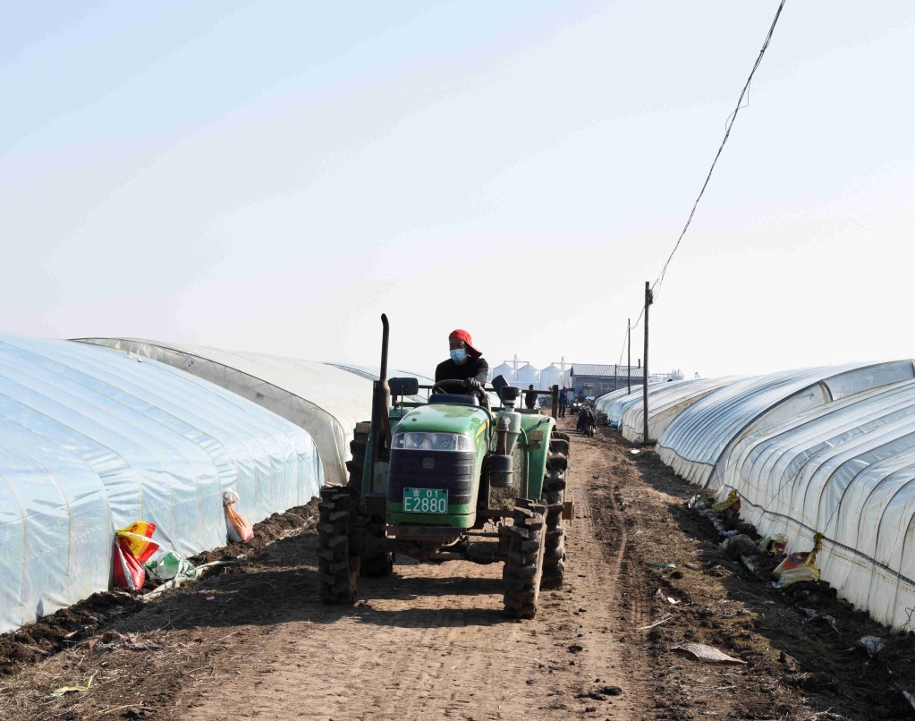 4月2日,在五常市友好村烏拉巴街屯,村民正在將土運(yùn)進(jìn)大棚。新華社記者梁書斌攝