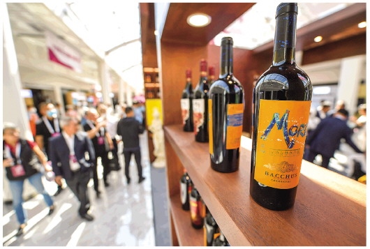 這是賀蘭山葡萄酒展銷會現場展示的寧夏葡萄酒(9月7日攝)。新華社記者馮開華攝