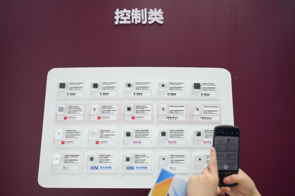 8月26日,一位參觀者在拍攝展出的車用芯片。當(dāng)日,2022世界新能源汽車大會(huì)在北京、海南兩地以線上、線下相結(jié)合的方式召開。新華社記者鞠煥宗攝