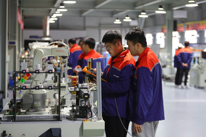 圖為11月2日,在沈陽(yáng)工學(xué)院工業(yè)機(jī)器人實(shí)訓(xùn)中心,機(jī)器人工程專(zhuān)業(yè)學(xué)生進(jìn)行工業(yè)機(jī)器人基礎(chǔ)實(shí)踐應(yīng)用操作。近年來(lái),沈陽(yáng)工學(xué)院全力建設(shè)工業(yè)機(jī)器人實(shí)訓(xùn)中心,將車(chē)間搬進(jìn)校園。針對(duì)企業(yè)需求,學(xué)校開(kāi)展機(jī)械加工等實(shí)操課程,有力提升學(xué)生就業(yè)水平。新華社記者 楊青 攝