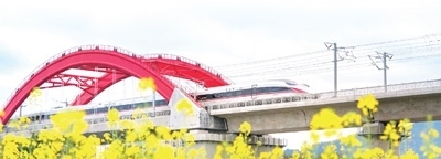 “復(fù)興號(hào)”高鐵列車在贛深高鐵龍南特大橋疾馳而過(guò)。朱海鵬攝