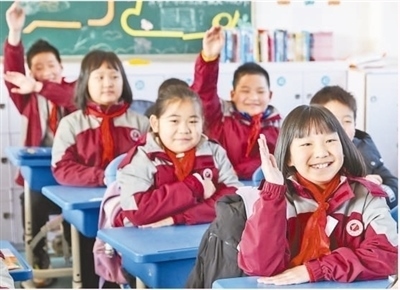 上海市松江區(qū)岳陽小學,同學們在課堂上紛紛舉手回答老師的問題。姜輝輝攝(影像中國)
