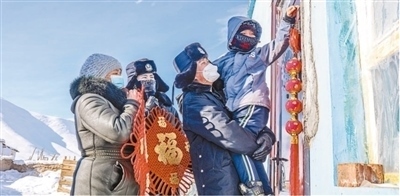 在新疆維吾爾自治區(qū),阿勒泰邊境管理支隊富蘊大隊吐爾洪邊境派出所的民警和護邊員到偏遠山區(qū)困難群眾家中探訪。李銘驥攝(影像中國)