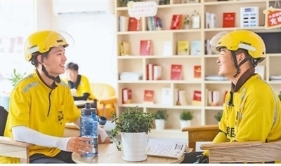 江蘇省淮安市打造集閱讀休息、補給茶水、醫(yī)療等多功能為一體的驛站,為外賣騎手、網(wǎng)約車司機等新就業(yè)群體從業(yè)人員提供暖心服務(wù)。趙啟瑞攝(人民視覺)