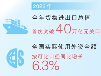 開放發(fā)展闊步向前。加快推進高水平對外開放,2022年外貿(mào)外資再創(chuàng)歷史新高,我國正持續(xù)成為全球投資興業(yè)的熱土。