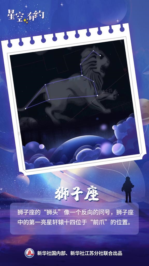 王科超說,獅子座的“獅頭”像一個(gè)反向的問號(hào),“春季大三角”中的五帝座一處于獅子座的“獅尾”,而獅子座中的第一亮星軒轅十四則位于“前爪”的位置。獅子座的觀測可以從3月持續(xù)至8月,感興趣的公眾可以一觀。
