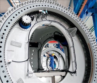 ▲ 在黑龍江省齊齊哈爾市中國一重集團有限公司風電裝備生產制造廠生產車間,工人進行生產作業(yè)(2021年7月1日攝) 王建威攝