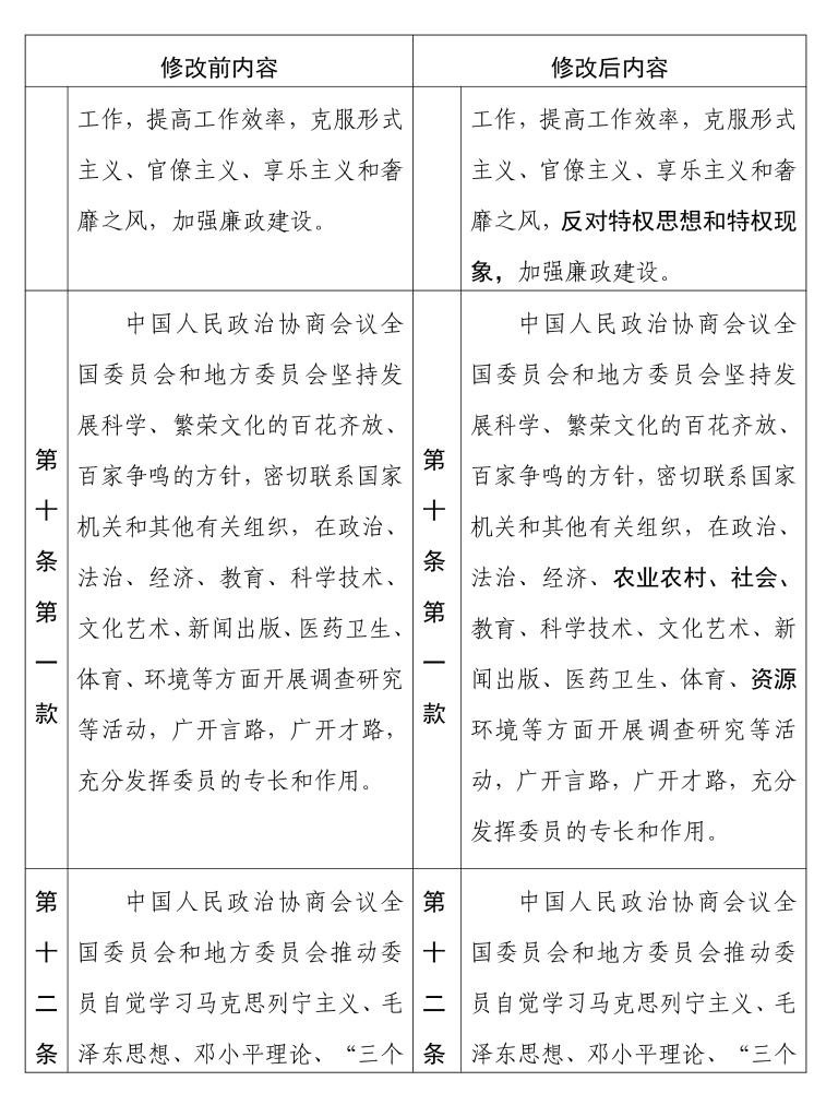 中國(guó)人民政治協(xié)商會(huì)議章程 修改前后內(nèi)容對(duì)照表(10) 新華社發(fā)