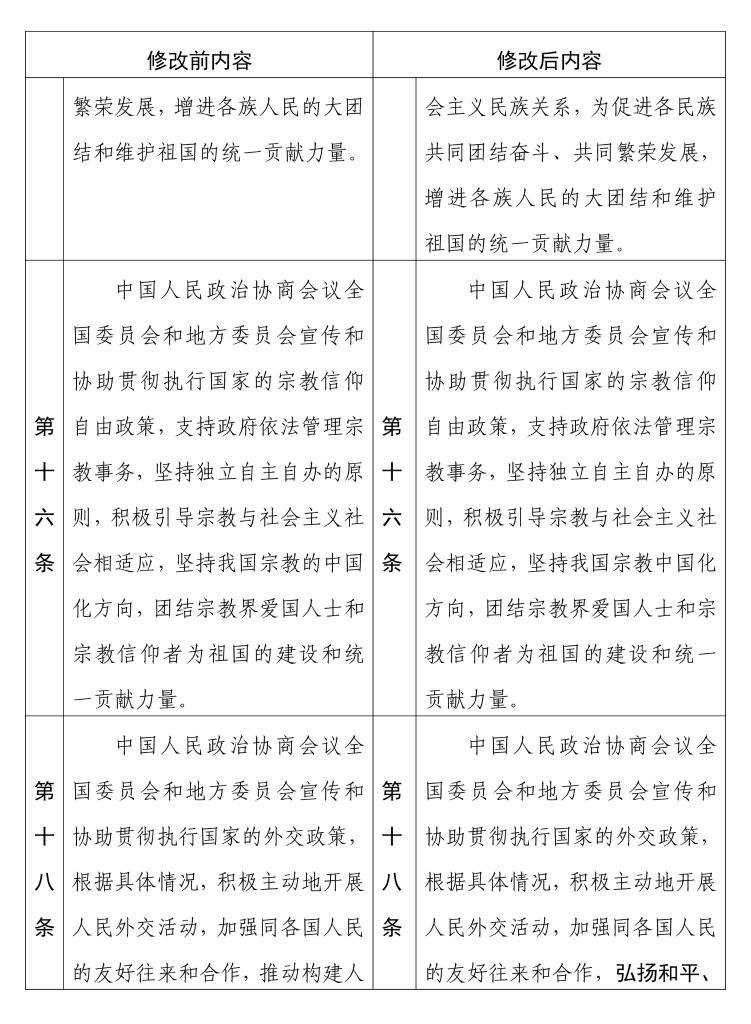 中國(guó)人民政治協(xié)商會(huì)議章程 修改前后內(nèi)容對(duì)照表(16) 新華社發(fā)