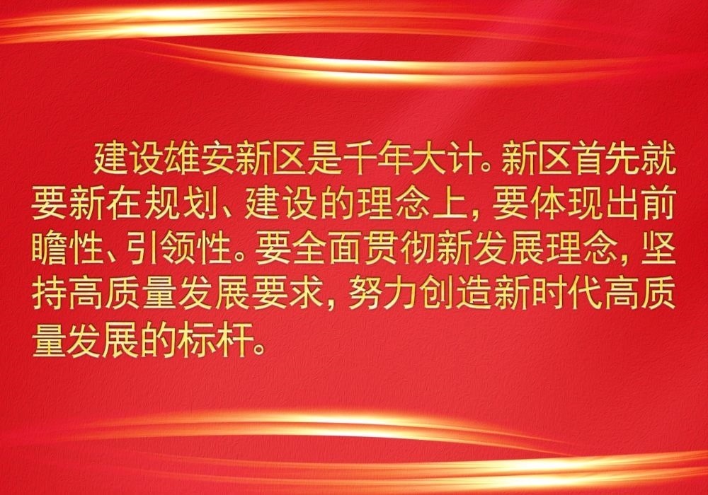 習(xí)近平總書記高瞻遠(yuǎn)矚謀劃推動雄安新區(qū)規(guī)劃建設(shè),他強(qiáng)調(diào),要貫徹高質(zhì)量發(fā)展要求,創(chuàng)造“雄安質(zhì)量”,在推動高質(zhì)量發(fā)展方面成為全國的一個(gè)樣板。