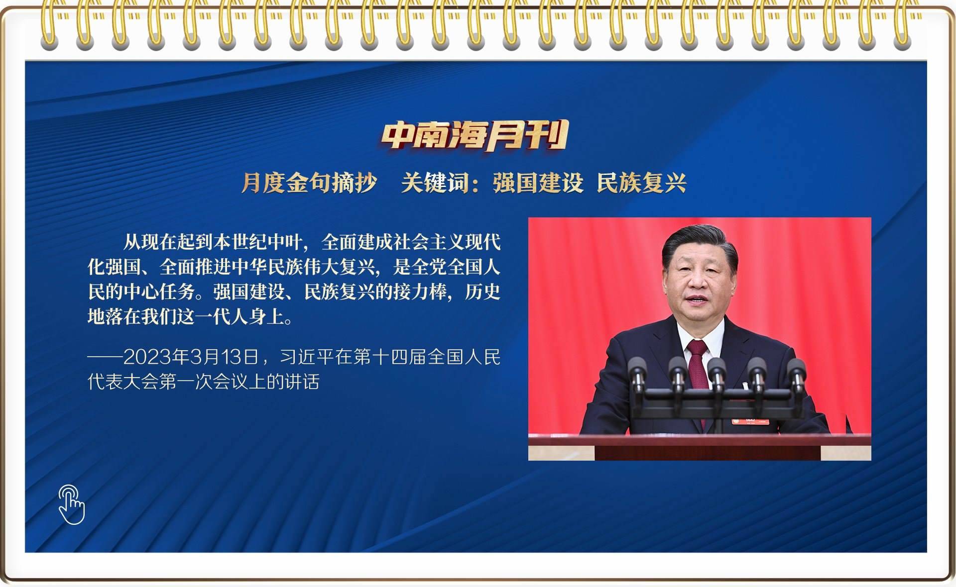 央視網(wǎng)《中南海月刊》運(yùn)用智能大數(shù)據(jù),與您一起回顧習(xí)近平總書記3月份繁忙的工作和講話,感受我們共和國前進(jìn)掌舵者、人民幸福領(lǐng)路人赤誠的為民情懷和天下胸懷。
