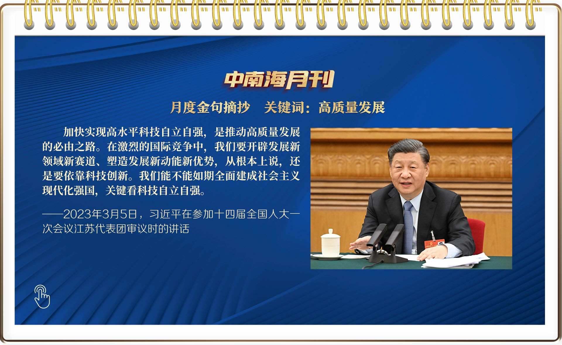 5日,今年全國兩會首次到團(tuán)組,總書記以高質(zhì)量發(fā)展為題,從“制造業(yè)必須筑牢”聊到農(nóng)業(yè)現(xiàn)代化,再談到太湖水質(zhì)……他詳細(xì)闡述未來中國高質(zhì)量發(fā)展的發(fā)力點(diǎn)——高水平科技自立自強(qiáng)、加快構(gòu)建新發(fā)展格局、推進(jìn)農(nóng)業(yè)現(xiàn)代化、人民幸福安康,為未來中國發(fā)展繪就新圖景。