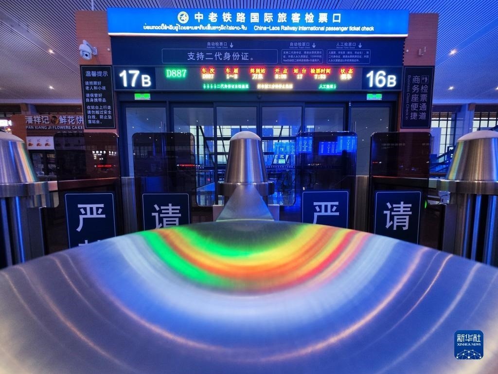 當(dāng)日,中老鐵路開行國際旅客列車,昆明至萬象間可實現(xiàn)乘火車當(dāng)日通達(dá)。新華社記者 邢廣利 攝
