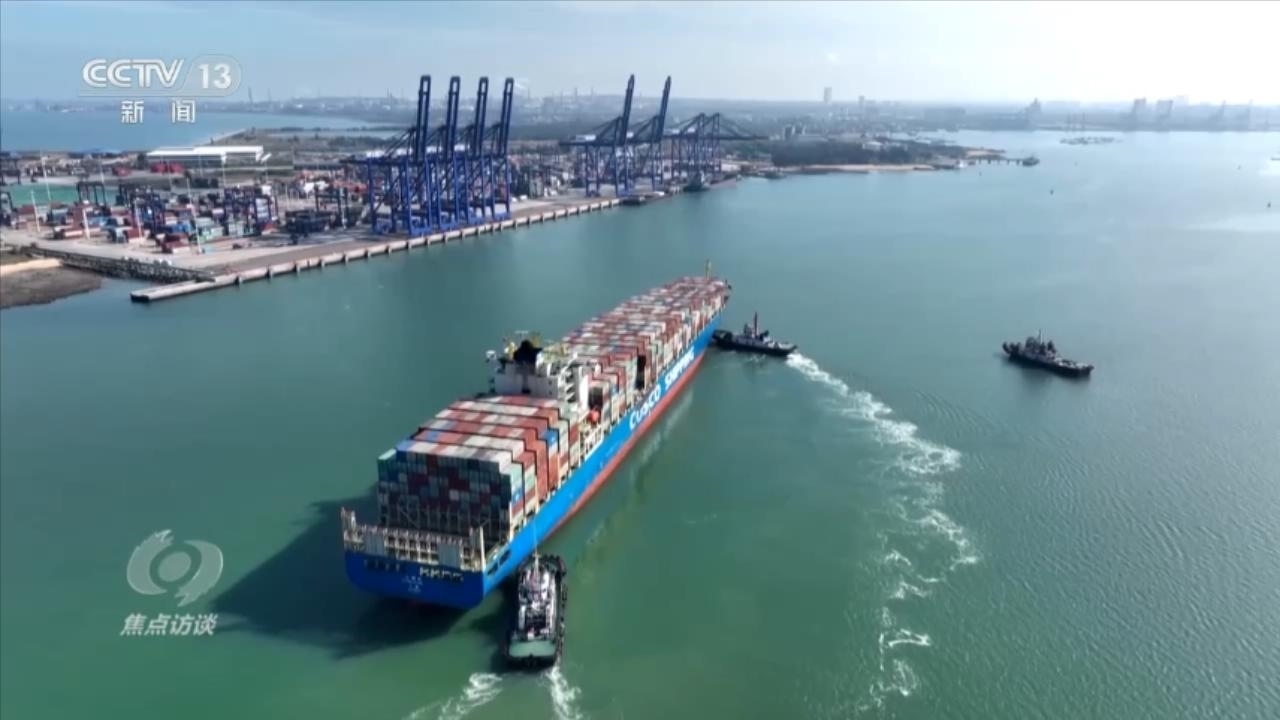 在距離???40多公里的海南洋浦國際集裝箱碼頭,一大早就一片繁忙景象。