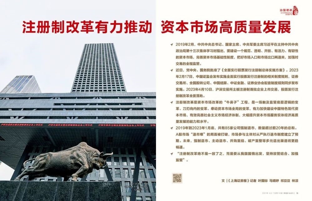 ◆ 注冊(cè)制改革是資本市場(chǎng)改革的“牛鼻子”工程,是一場(chǎng)觸及監(jiān)管底層邏輯的變革、刀刃向內(nèi)的變革、牽動(dòng)資本市場(chǎng)全局的變革,有力加快建設(shè)中國(guó)特色現(xiàn)代資本市場(chǎng),有效完善社會(huì)主義市場(chǎng)經(jīng)濟(jì)體制,大幅提升資本市場(chǎng)服務(wù)實(shí)體經(jīng)濟(jì)高質(zhì)量發(fā)展的能力和水平。