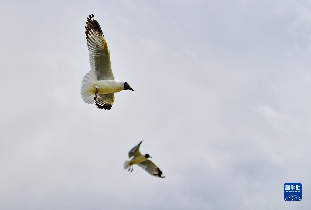 棕頭鷗盤(pán)旋在拉薩河上(4月16日攝)。