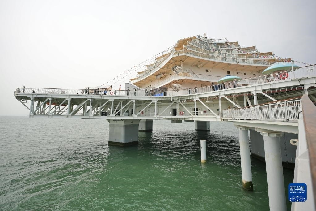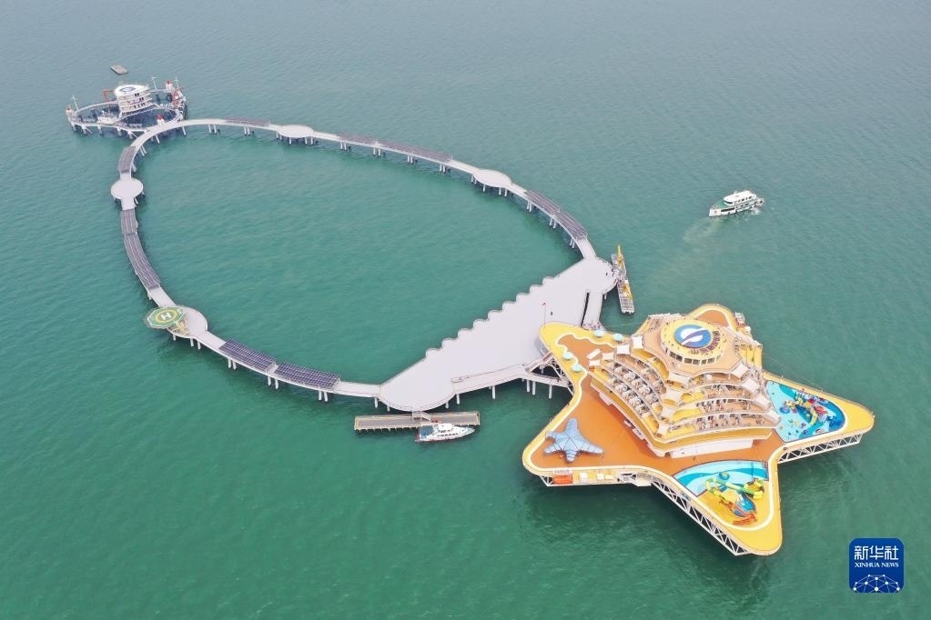 當(dāng)日,位于山東省煙臺市萊山區(qū)的“耕海1號”海洋牧場綜合體二期項目投入運(yùn)營?!案?號”集漁業(yè)養(yǎng)殖、海上觀光、休閑垂釣、餐飲住宿、科研科普等于一體,創(chuàng)新性實(shí)現(xiàn)現(xiàn)代海洋漁業(yè)、海洋工程技術(shù)和海洋文化旅游產(chǎn)業(yè)深度有機(jī)融合。新華社記者 李紫恒 攝