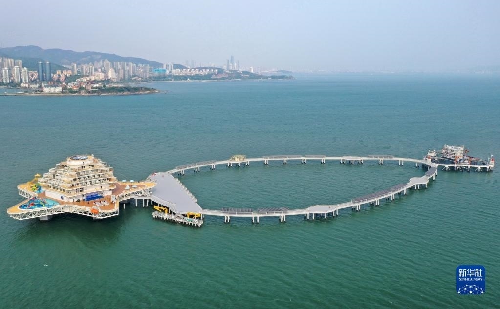 當(dāng)日,位于山東省煙臺市萊山區(qū)的“耕海1號”海洋牧場綜合體二期項目投入運(yùn)營?!案?號”集漁業(yè)養(yǎng)殖、海上觀光、休閑垂釣、餐飲住宿、科研科普等于一體,創(chuàng)新性實(shí)現(xiàn)現(xiàn)代海洋漁業(yè)、海洋工程技術(shù)和海洋文化旅游產(chǎn)業(yè)深度有機(jī)融合。新華社發(fā)(唐克攝)
