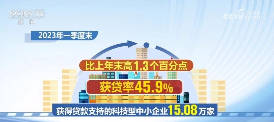 2023年一季度末,獲得貸款支持的科技型中小企業(yè)15.08萬(wàn)家,獲貸率45.9%,比上年末高1.3個(gè)百分點(diǎn)??萍夹椭行∑髽I(yè)貸款余額1.76萬(wàn)億元,同比增長(zhǎng)25.2%,比上年末高0.9個(gè)百分點(diǎn)。