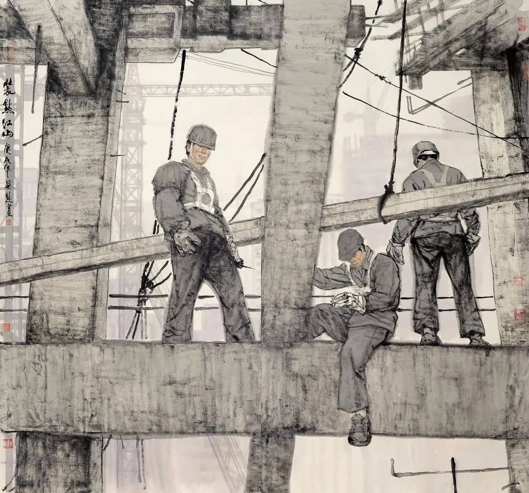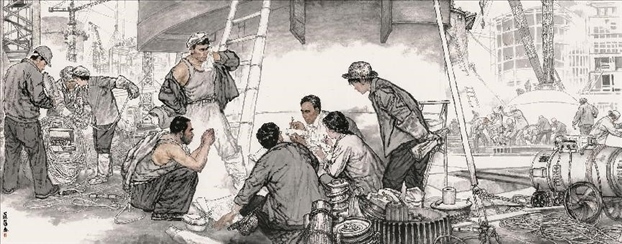 對傳統(tǒng)現(xiàn)實主義的繼承和拓展。作為一位具備卓越造型能力的人物畫家,蔡超始終堅持深入現(xiàn)實生活,他以敏銳的觀察力和理解力,以豐富的人生閱歷不斷從生活中提煉創(chuàng)作母題,發(fā)掘常人所不易察覺的藝術趣味。因此,蔡超筆下的人物總是葆有鮮活的生命和氣息,他們不是空洞的“人民”,而是牢固與地氣相接,與時代共呼吸的真正的“人民”,他創(chuàng)造了嶄新的屬于贛鄱大地的人民形象,這是蔡超對于江西現(xiàn)實主義繪畫創(chuàng)作最重要的貢獻。同時,蔡超不僅繼承了徐悲鴻、蔣兆和以來中國人物畫創(chuàng)作的優(yōu)良傳統(tǒng),更以“筆墨當隨時代”的勇氣和魄力,在工業(yè)題材領域樹立了令人耳目一新的繪畫范式——這是一個前無古人的偉大突破。
