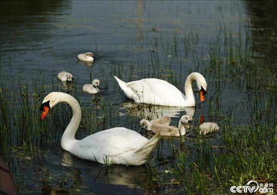 鄭州:濕地公園第三代疣鼻天鵝降生。