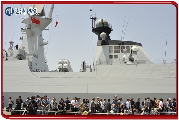 他們中的很多人是由中國艦船從蘇丹接護(hù)到沙特再乘機(jī)返回的,在輾轉(zhuǎn)途中,譚主記錄下這樣一幕,有一位手持國旗的女同胞,在即將踏上中國艦船的舷梯時(shí),激動(dòng)地失聲痛哭。
