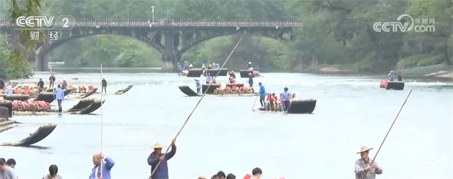 總臺(tái)記者 劉夢(mèng)齡:我現(xiàn)在所在的位置是福建武夷山景區(qū)的九曲溪竹筏碼頭?!拔逡弧奔倨诘牡诙?,武夷山景區(qū)迎來了客流的最高峰,九曲溪竹筏漂流是景區(qū)里最熱門的旅游項(xiàng)目之一,為了更好服務(wù)游客,景區(qū)每天開行竹筏漂流12趟,最多能滿足8000名游客的需求。