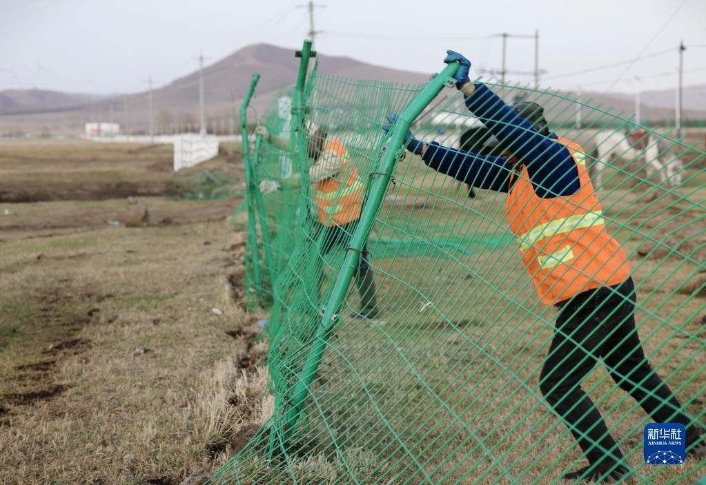 5月2日,河北省承德市豐寧滿族自治縣大灘鎮(zhèn)扎拉營(yíng)村的護(hù)林員趙世海(右)和羅金寶在海留圖國(guó)家濕地公園修復(fù)護(hù)欄。