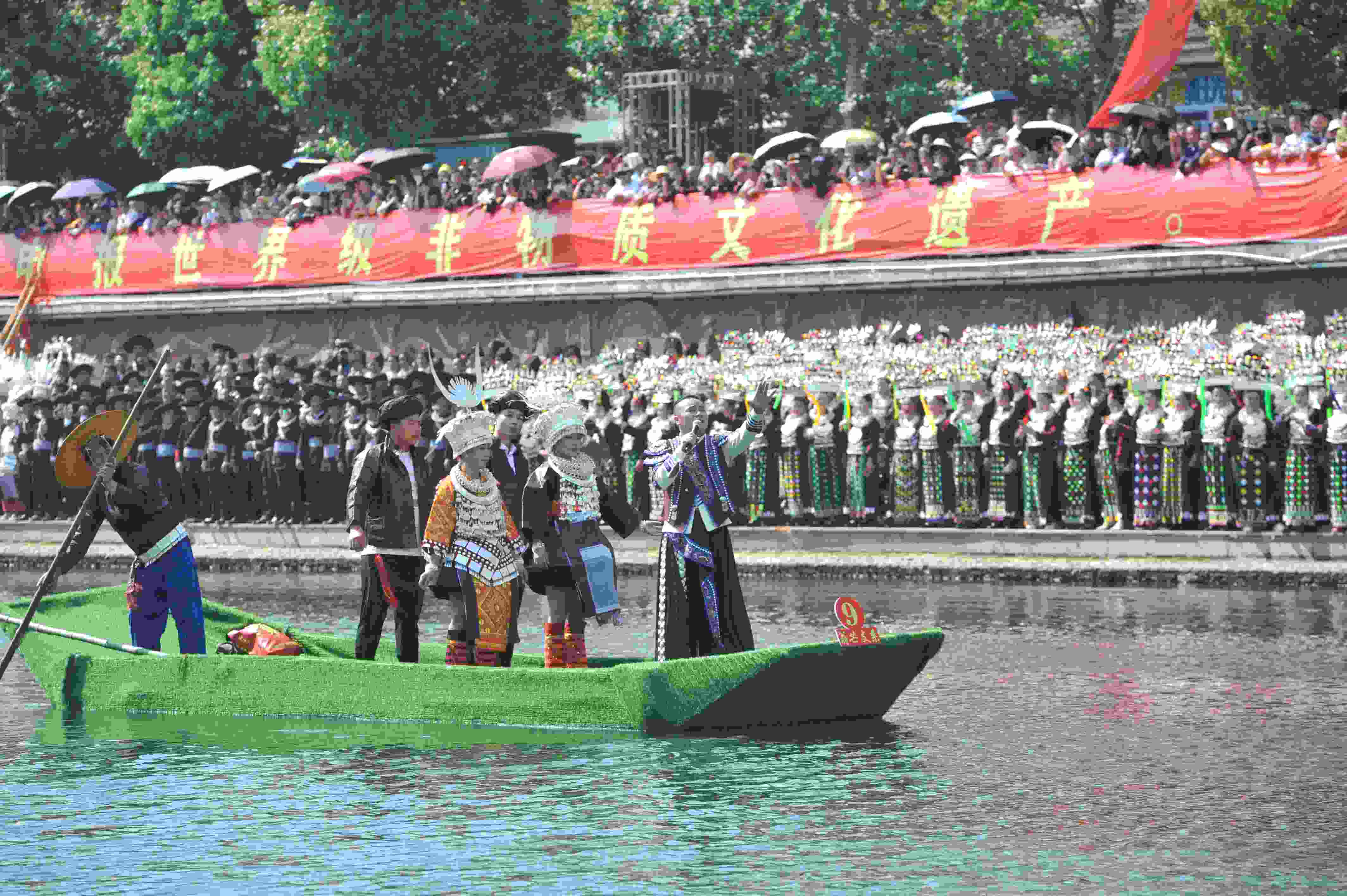 貴州臺(tái)江:翁你河畔上演萬(wàn)人苗歌對(duì)唱