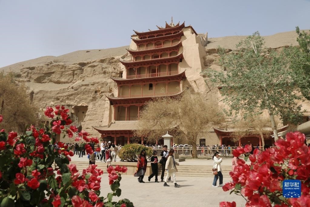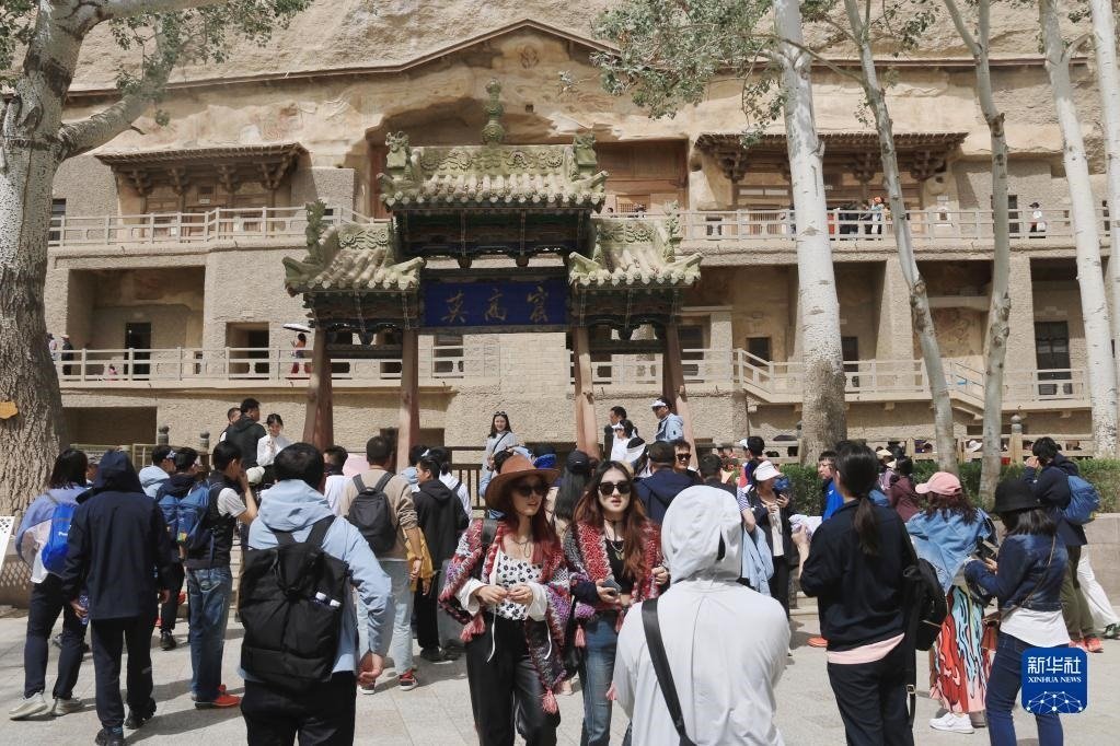 游客在莫高窟游覽(5月2日攝)。   新華社發(fā)(張曉亮 攝)