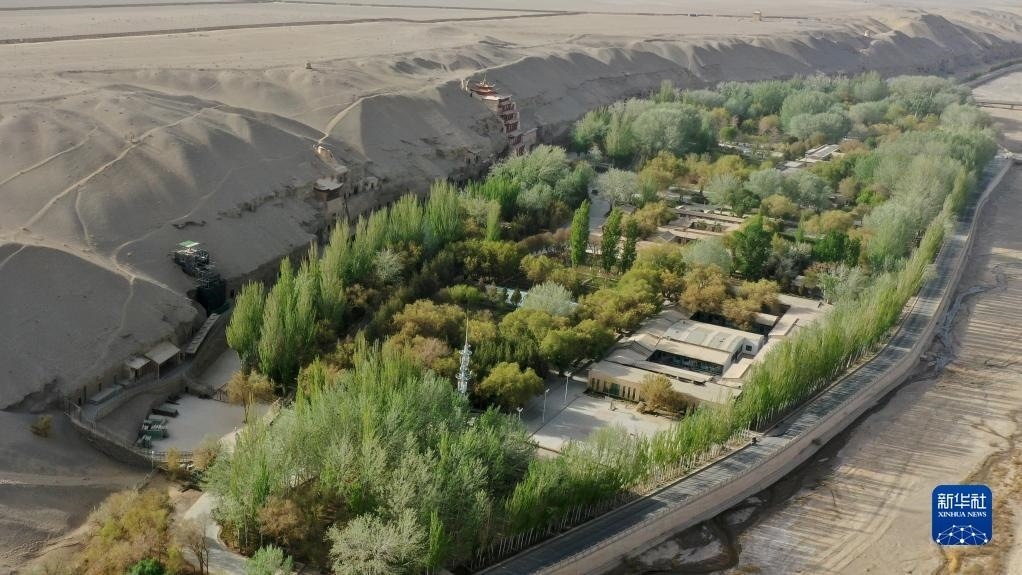 4月25日拍攝的莫高窟窟區(qū)(無人機(jī)照片)。   新華社記者 方欣 攝